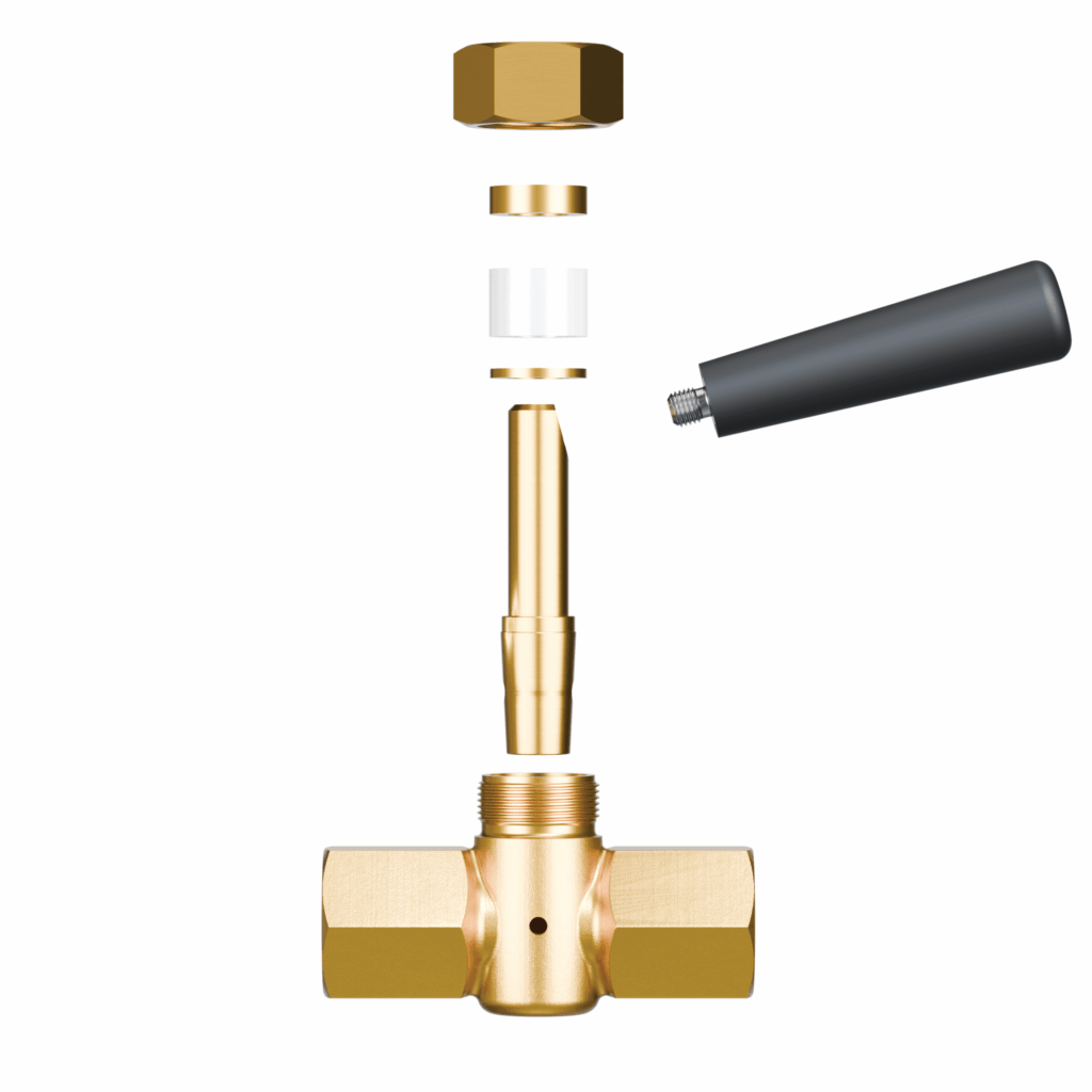 Těleso je kované. Tlakoměrový kohout je armatura sloužící k uzavření průtoku provozní látky mezi kohoutem a tlakoměrem odvzdušňovací otvor v tělese. Na kuželu jsou vyznačeny rýhy, udávající směr vrtání pro obsluhu kohoutu. Pokud by došlo v provozu u kohoutu k netěnosti ucpávky, je nutno dotáhnout ucpávkovou matici, případně doplnit nebo vyměnit ucpávkové těsnění.