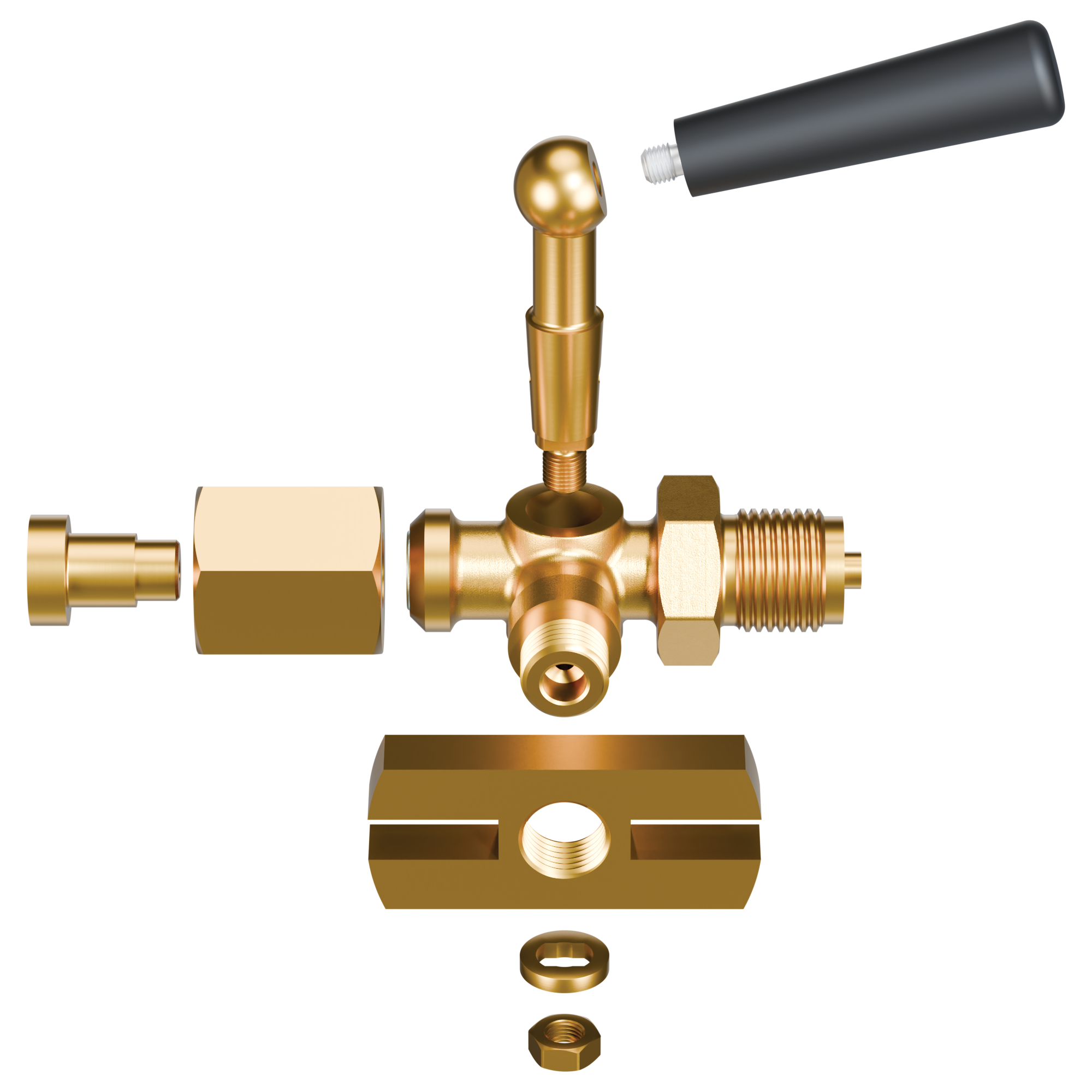Těleso kohoutku je obrobek z tyče, kužel je přidržován zdola maticí. Tlakoměrový kohout je armatura sloužící k uzavření průtoku provozní látky. Boční výstup s přírubou slouží k připojení zkušebního tlakoměru nebo k odvzdušňování tlakoměru a profukování přípojky. Na kuželu jsou vyznačeny rýhy, udávající směr vrtání pro obsluhu kohoutu.