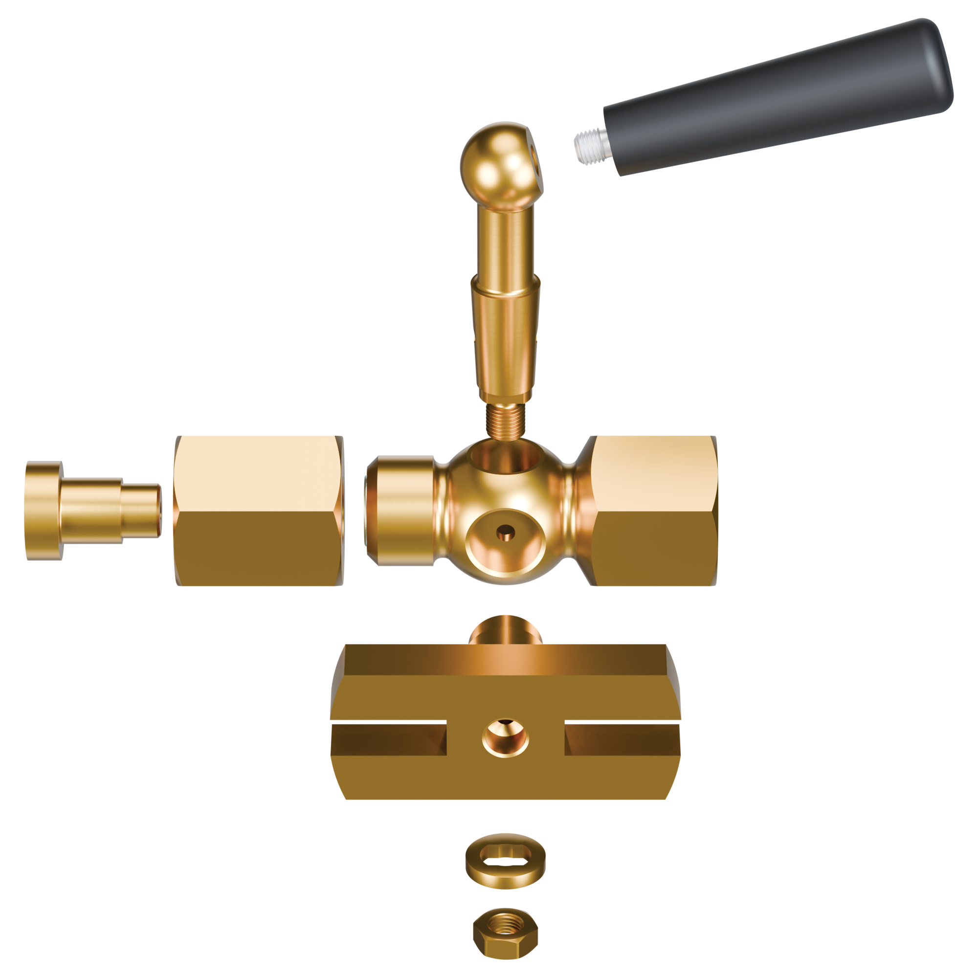 Těleso kohoutku je obrobek z tyče, kužel je přidržován zdola maticí. Tlakoměrový kohout je armatura sloužící k uzavření průtoku provozní látky. Boční výstup s přírubou slouží k připojení zkušebního tlakoměru nebo k odvzdušňování tlakoměru a profukování přípojky. Na kuželu jsou vyznačeny rýhy, udávající směr vrtání pro obsluhu kohoutu.