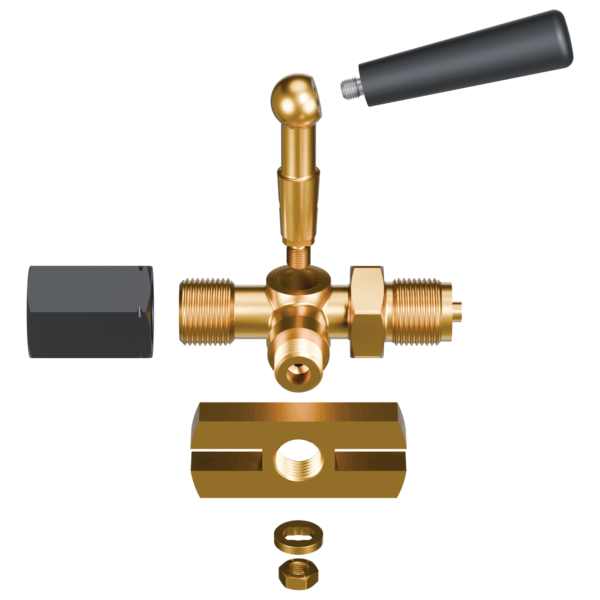 Těleso kohoutu je kované, kužel je přidržován zdola maticí. Tlakoměrový kohout je armatura sloužící k uzavření průtoku provozní látky. Boční výstup s přirubou slouží k připojení zkušebniho tlakoměru nbo k odvzdušňovaní tlakoměru a profukování přípojky. Na kuželu jsou vyznačeny rýhy, udávající směr vrtání pro obsluhu kohoutu.